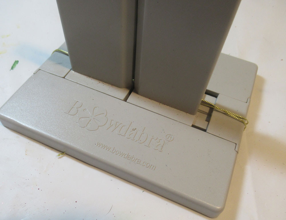 Cut 2 pieces of the swirl ribbon approximately 12″ in length, then place in the Bowdabra.