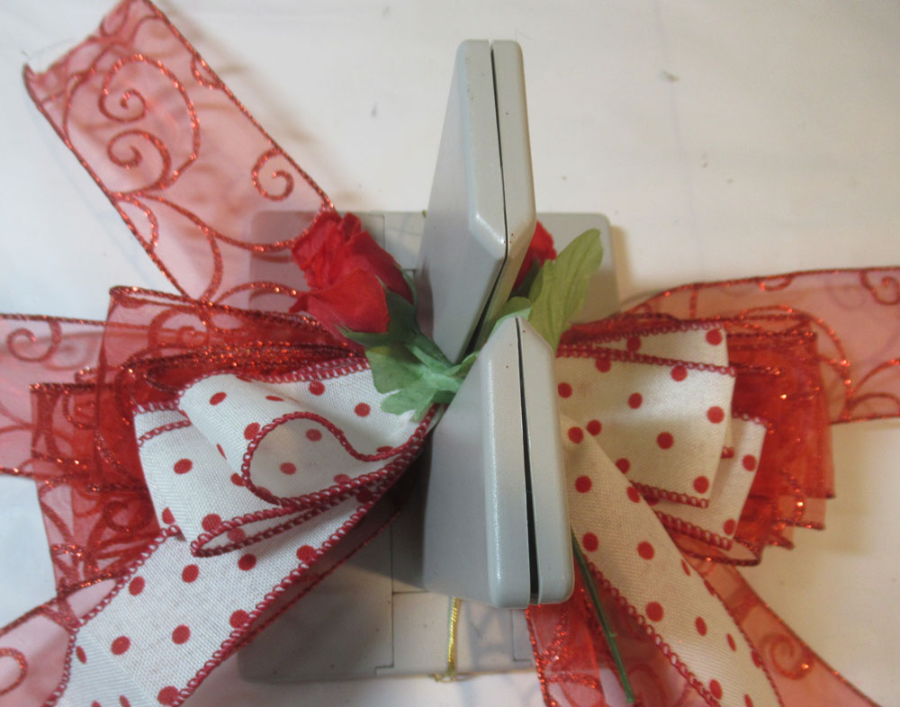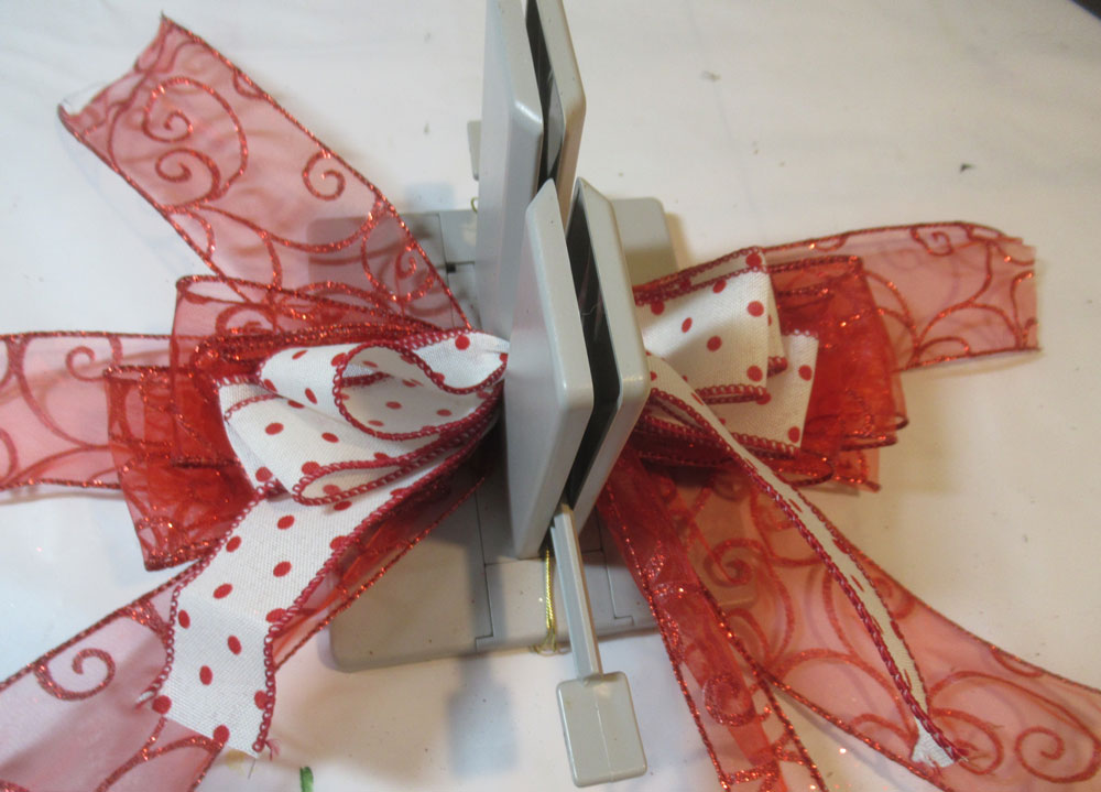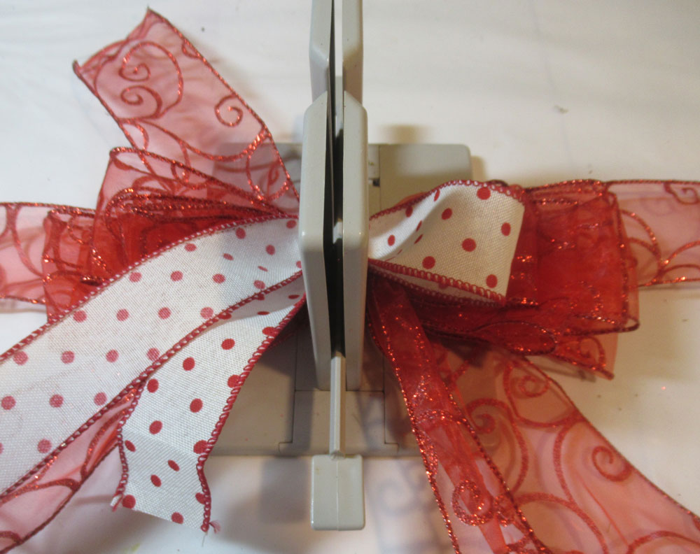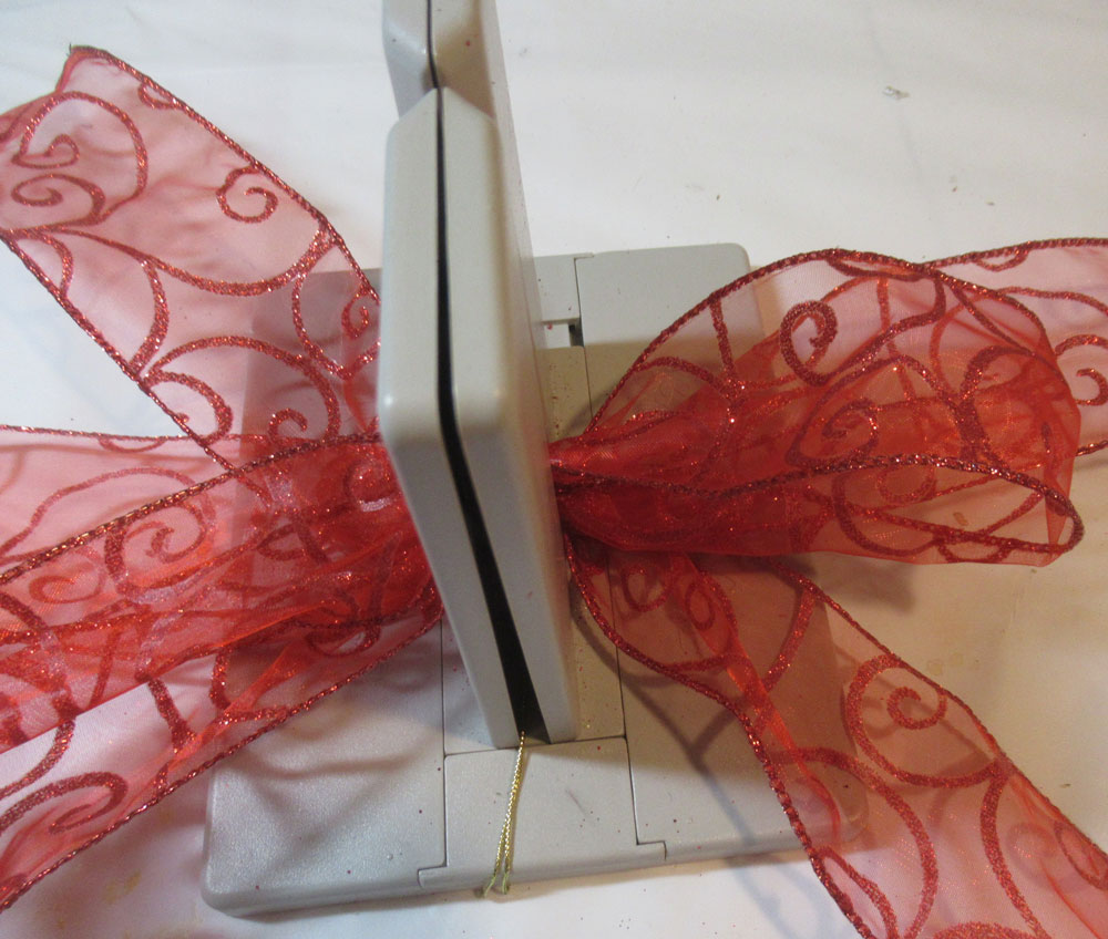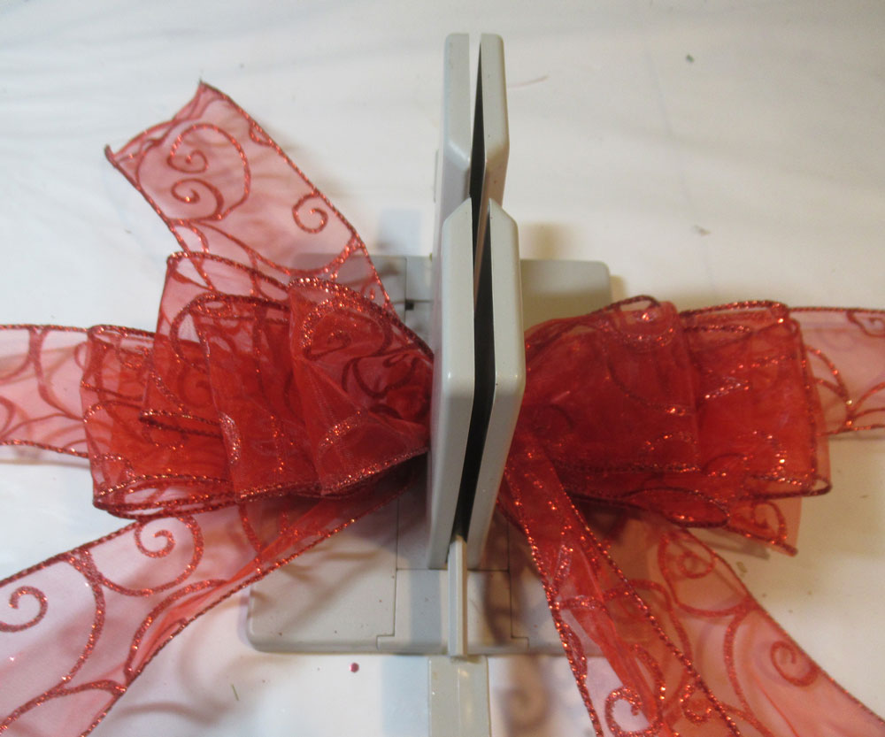 Create the bow by placing the ribbon in the channel, twisting the ribbon on each turn.