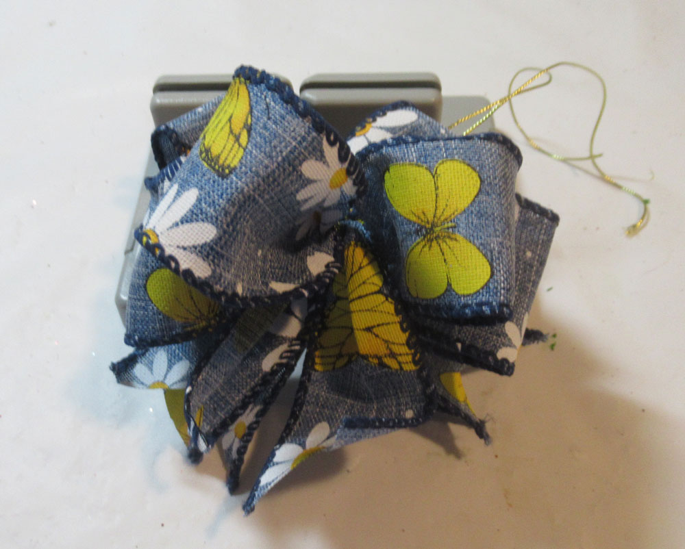 Create the bow by placing the ribbon in the channel, twisting the ribbon on each turn.