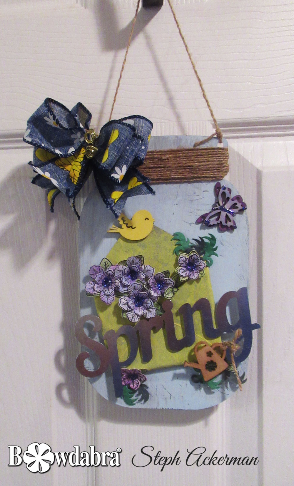 Hi everyone, Steph Ackerman here, sharing a Spring wall hanging using the Bowdabra to create a fabulous bow.