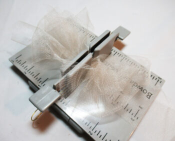 After you place the tulle in the Bowdabra start creating loops, twisting the tulle as it passes through the channel.