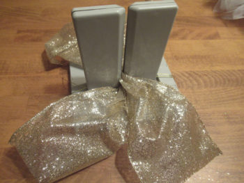 Cut 2 lengths of gold ribbon, each approximately 12″, and place them in the channel.