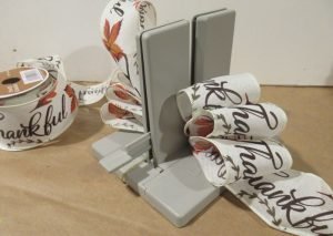 Start by placing the Bow Wire in the channel and placing it under the Bowdabra while creating your bow. Leaving a 6″ tail, place the ribbon in the Bowdabra and start creating loops.