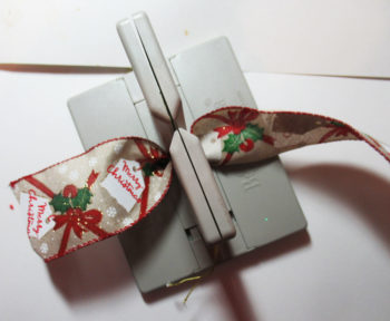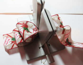 Place the ribbon in the Bowdabra, leaving a 4″ length.