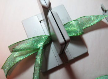 Start by placing the Bow Wire in the Bowdabra and folding it underneath while working on your gift bow. Cut a 12″ length of ribbon and place it in the Bowdabra.
