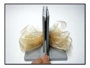 To make the bow for the centerpiece, cut a 24” piece of Bowdabra Bow Wire and fold it in half. Lay it into the Bowdabra. You’ll have a loop at one end and two loose pieces at the opposite end.