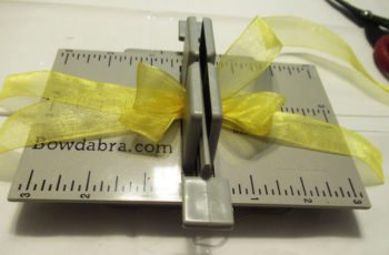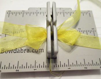 Start by placing a 12″ strip of ribbon in the Bowdabra.