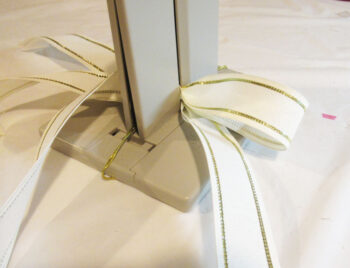 Cut 8″ strips of ribbon and place them in the channel.