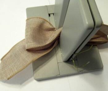 First, cut, fold in half and lay some bow wire in the Bowdabra and place the ends underneath while creating the bow.