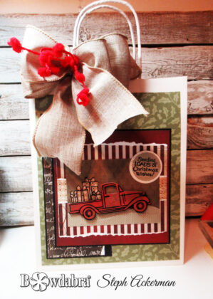 Hi everyone, Steph Ackerman here to share this step-by-step tutorial how decorate a Christmas gift bag using Bowdabra. July is the perfect time to start on your holiday decor and crafts!
