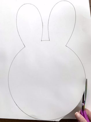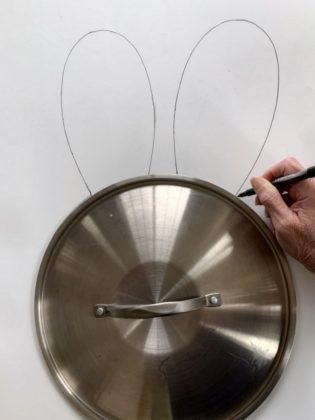 Let’s begin by drawing the bunny’s head and ears using a large pan top on a poster board for a template.