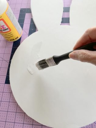 Add a light layer of Mod Podge to the bunny head and . . .