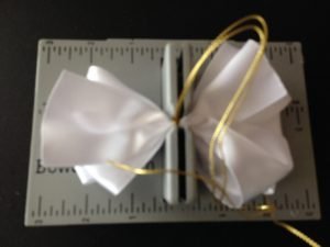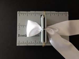 Fold a 36″ ribbon to find the center, creasing it and placing into the Mini Bowdabra.