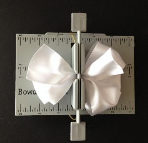 Begin by folding 18″ bow wire in half and placing it in the Mini Bowdabra, tucking ends under.
