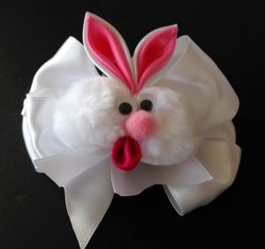 Want to learn how to dress up a plain Mini Bowdabra Loopy Bow for Easter? Here’s an easy to follow tutorial on making a Loopy Bow adorned with an adorable bunny topper.
