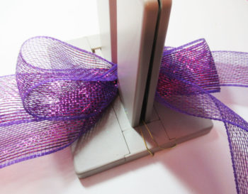 Start by placing the Bow Wire in the Bowdabra and fold it underneath while working. Cut a 12″ length of ribbon and place it in the Bowdabra.