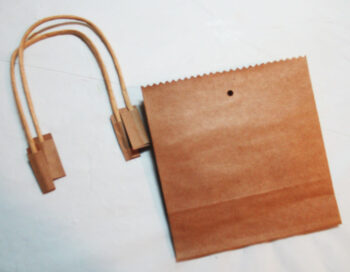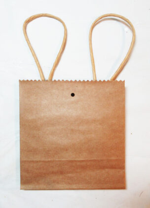 To make the bags, use a kraft bag and cut it below the handles using decorative scissors.