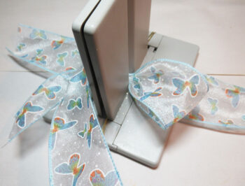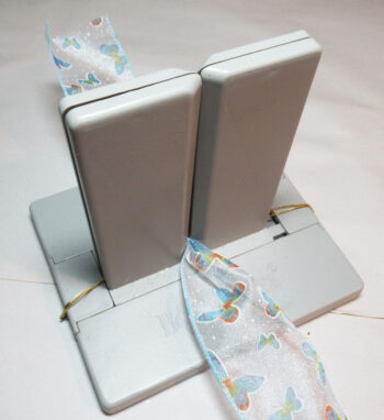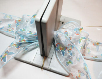 Next, cut a 12″ length of ribbon and place it in the Bowdabra.