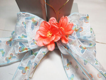 Fluff out again and place flowers in the vase. Why present mom with a plain old vase when you can embellish a special Mother’s Day vase with Bowdabra? Please like us on Facebook and be there each Monday evening at 7:00 EST, 6:00 CST, 5:00 MST, and 4:00 PST when we present Facebook live. We will show you several quick-to-make projects. In addition, one lucky viewer will win a free roll of ribbon. See you there!