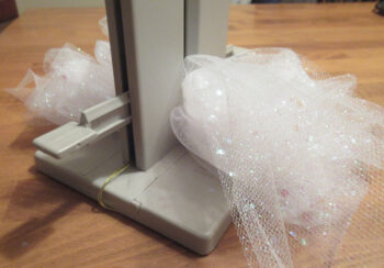 Pull the loose wires through the loop tight while the bow is still in the Bowdabra. Turn to the back and tie a knot. Double knot it.