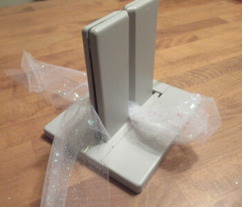Place 2 – 8″ lengths of ribbon in the Bowdabra.