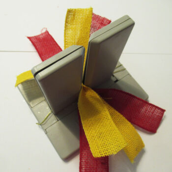 Wrap the package with orange ribbon.