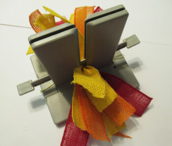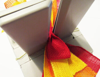 Place12″ strips of red and yellow burlap strips in the channel.