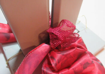 Decorate a vase with several different ribbons.