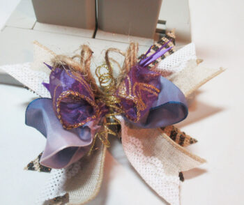 Repeat this step with a gold-based purple ribbon, a bit smaller than the lavender ribbon.
