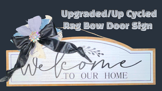 Hi there! I’m Joette from the Bowdabra Design Team. In this video tutorial, I’ll guide you through a fun and easy way to upgrade a door sign or wall hanger in just minutes, using upcycled materials. We’ll craft a simple rag bow door sign from strips of old clothes, jeans, leather, and scrap pieces of lace trim to enhance a dollar store sign, transforming it into a personalized piece that adds charm to your space. Let’s get started with this exciting upgrade!