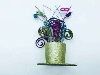 Mardi Gras centerpiece after! I hope this has given you some ideas on how to create fun party decor with your Mini Bowdabra!