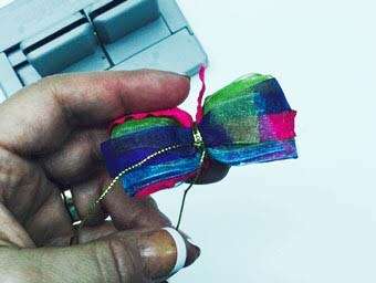 Hi everyone! Tammy here with you today to show you how to use your Mini Bowdabra to add some flair to this store bought Mardi Gras centerpiece. I love to host parties for my friends and this centerpiece would be perfect for the upcoming celebration. Here is how I made the bow