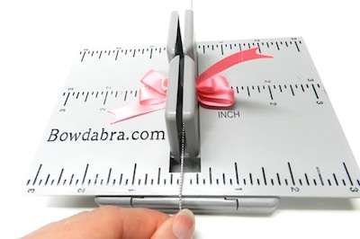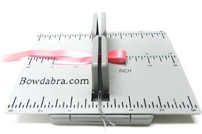 2. To make the bow for the magnet place the Hair Bow Tool & Ruler onto the Mini Bowdabra. Cut 18″ of Bowdabra Bow Wire and fold it in half and place it into the Mini Bowdabra.