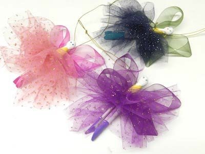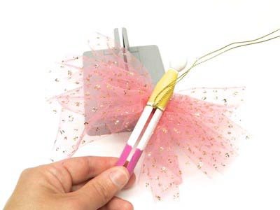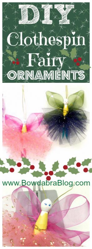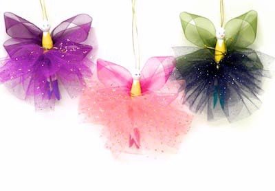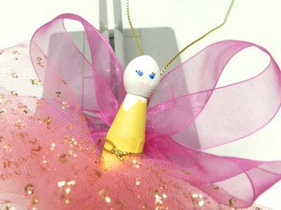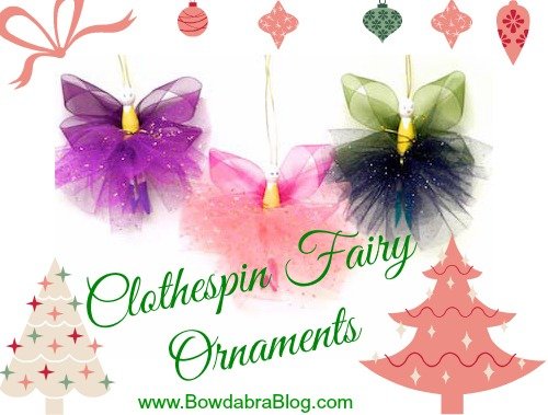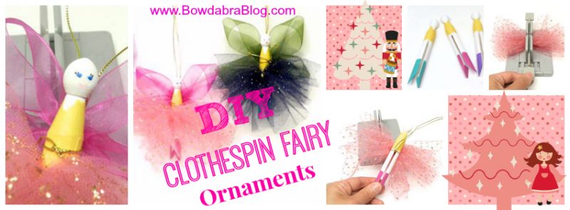 Using the Mini Bowdabra, sheer ribbon, and clothespins design these adorable fairy ornaments. The ornaments are perfect for