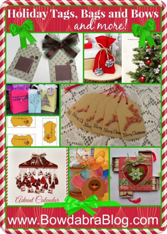 Welcome to our Feature Friday series which we are featuring holiday tags, holiday bags and more this week from some of our favorite blogs. Last week in our Bowdabra Saturday Crafty Showcase several crafty bloggers shared some fun holiday ideas. We are featuring them along with some other tags we have found or created for you. Do you make your own gift tags and gift bags for the holidays? We would love to see your ideas. Pop on over tonight when we open up a new Bowdabra Crafty Showcase and you can link up your projects with us! Last week we featured Thanksgiving Turkey Crafts and Recipes.