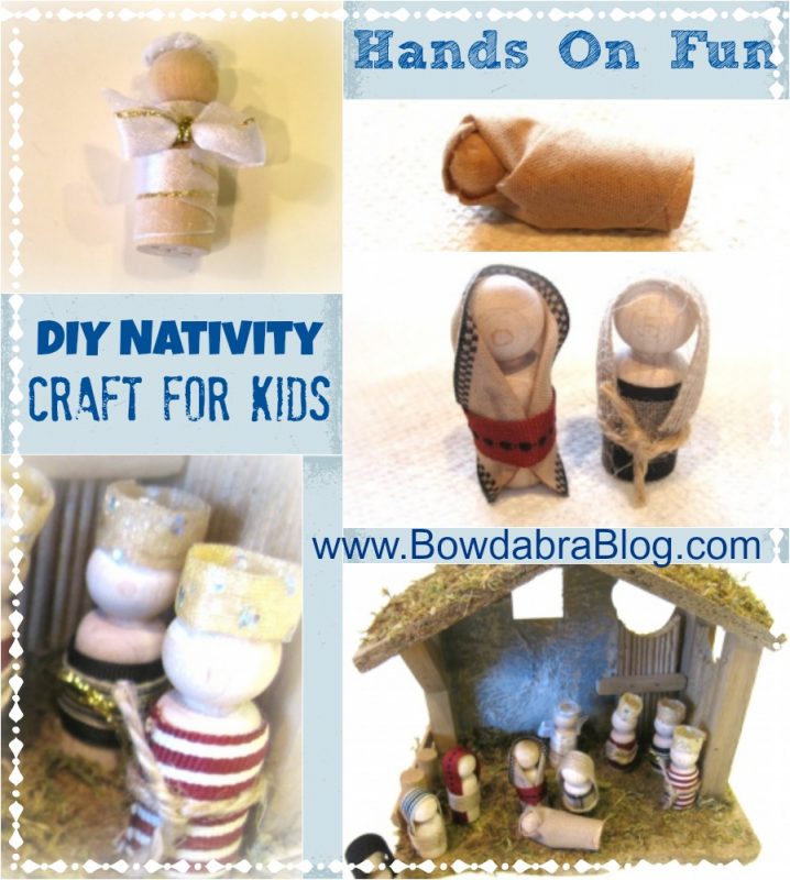 Gather some scraps of ribbon and create a simple and fun nativity with your kids. Create the characters by using wooden