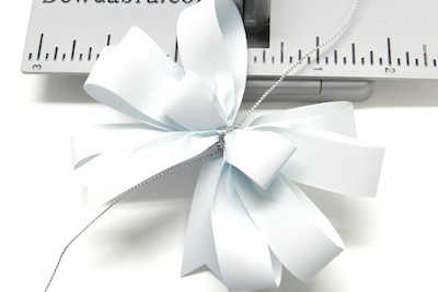 5. Dovetail the end of paper ribbon. Place the ribbon into the Mini Bowdabra to create a 2″ tail.