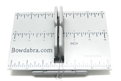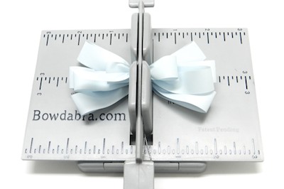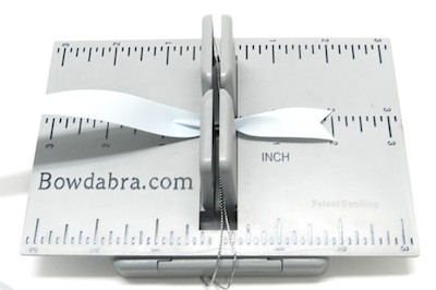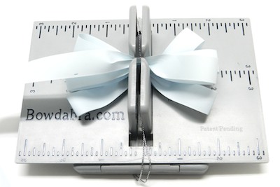 4. To make the bow for the gift – place the Hair Bow Tool & Ruler onto the Mini Bowdabra. Cut 18″ of Bowdabra Bow Wire and fold it in half. Place the wire into the Mini Bowdabra.