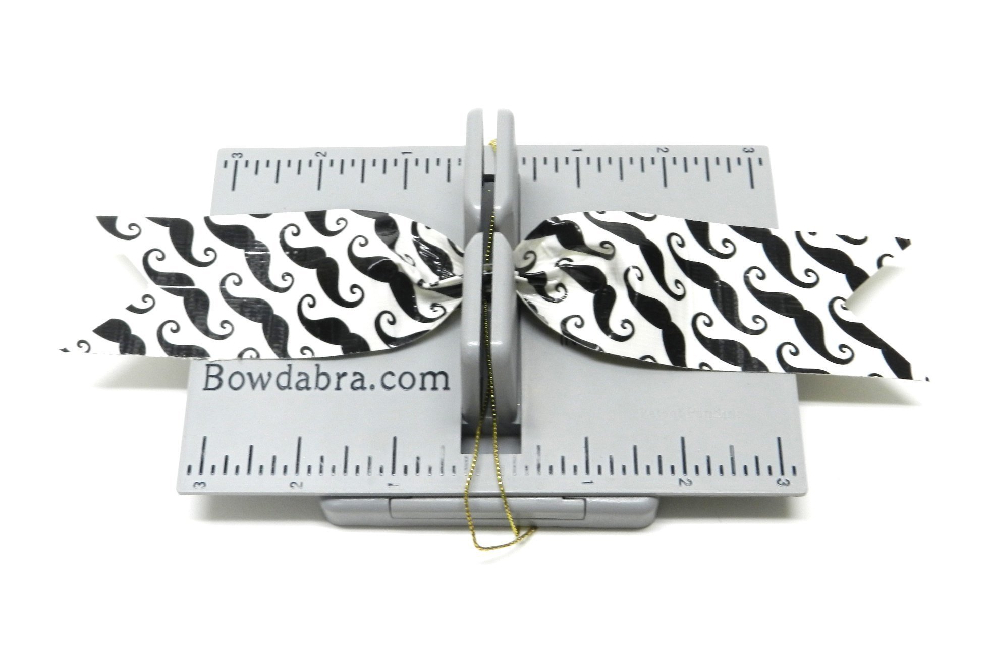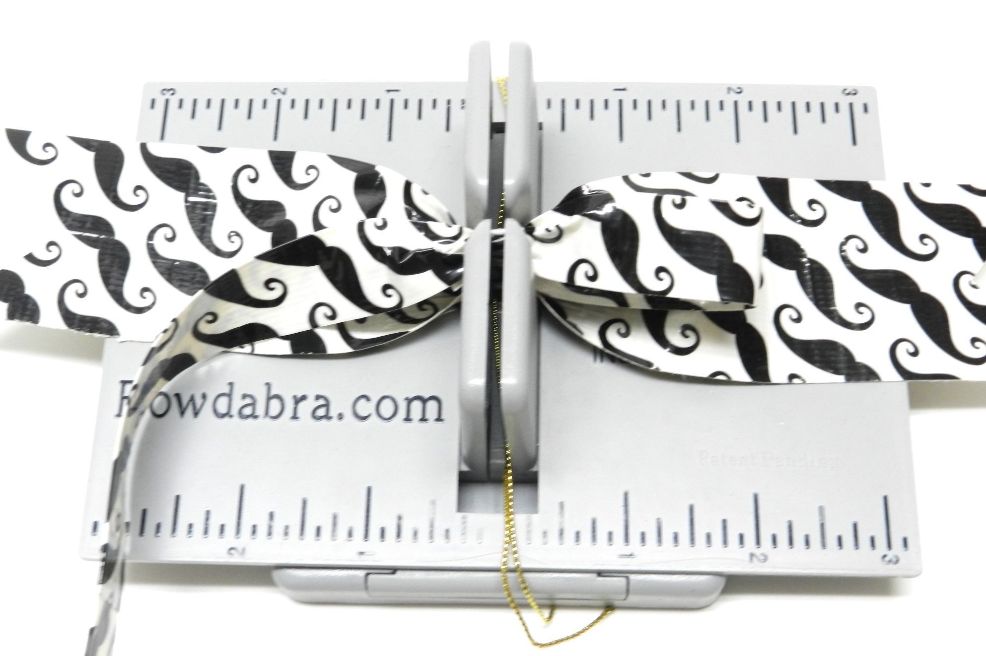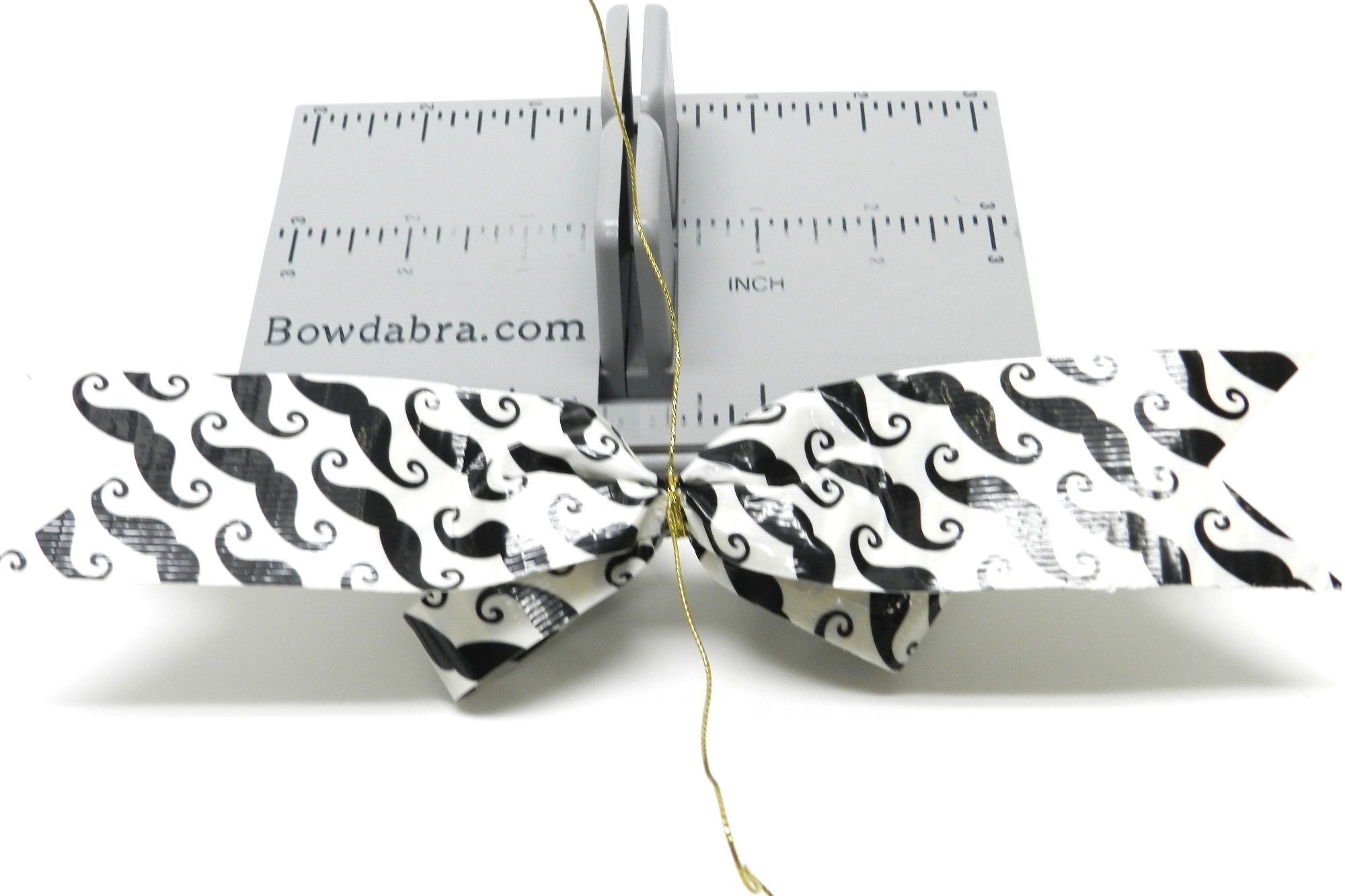 1. Begin by gathering all the materials you will need to make this bow. To make the duct tape bow place the Hair Bow Tool & Ruler onto the Mini Bowdabra. Cut 18″ of Bowdabra Bow Wire and fold the wire in half. Place the wire into the Mini Bowdabra.