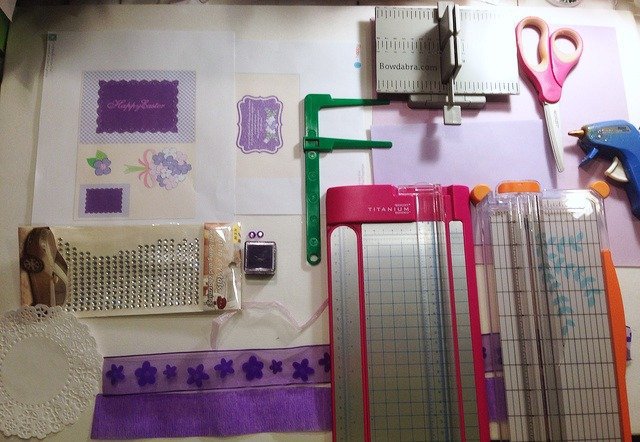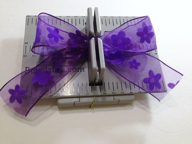 7. To make the large bow for the envelope you will need your Mini Bowdabra with Ruler along with ribbon and crepe paper.