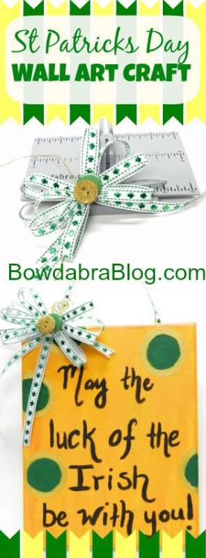 I purchased a pack of blank canvas and I have had so much finding unique and fun ways to use them. You don’t have to be an artist to paint on a canvas. Use sayings and geometric shapes to create interest and festivity with your art. Design St. Patrick’s Day wall art and finish it with a beautiful Bowdabra Bow.