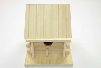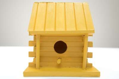 1. Begin with an unpainted wooden bird house. Give the birdhouse a quick sanding and then wipe it down with a damp rag.