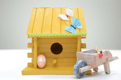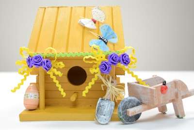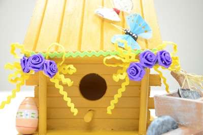 16. Your decorated bird house perfect for Easter and spring decor is complete.