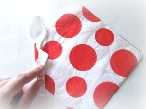 3. Place a spoon and/or fork to one side of the napkin. Roll to the right and tape in place.