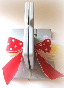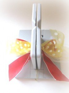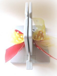 8. Next, place a piece of ribbon in the Bowdabra and make a loop on each side.
