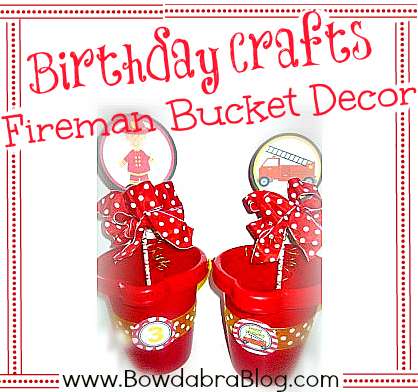 do a Fire truck themed birthday party for my son’s 3rd birthday. The ”œBirthday crafts” theme was perfect for me showcase my skills. Decorate the table with these cute red buckets and add a fun bow for additional cuteness.