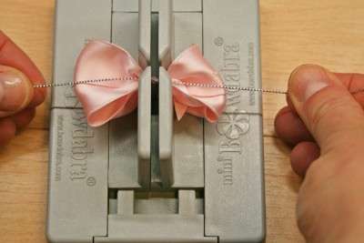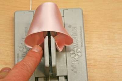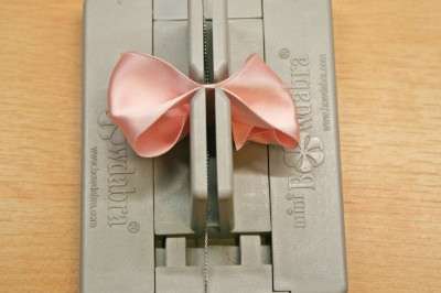 8. Press the ribbon into the Mini Bowdabra to form two loops.