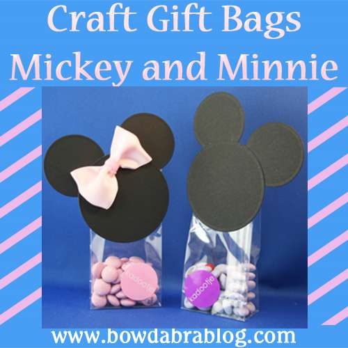We are so excited to celebrate National Craft Month! What’s a celebrate without little party bags, right! Design these handmade craft gift bags featuring little paper craft cuts that resemble Mickey and Minnie Mouse. These little party bags are perfect for baby showers and children’s birthday parties. Use the Mini Bowdabra to make Minnie’s classic pink bow tie hair bow.