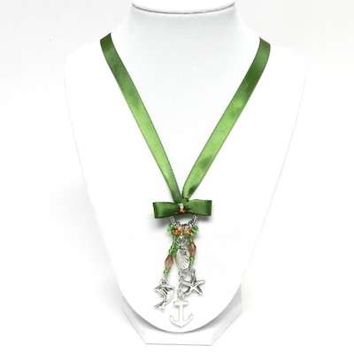 I chose an emerald green ribbon because it reminds me of when seaweed makes the ocean look emerald green. Get crazy with this project and have fun. Make your necklace as vibrant and colorful as you want.