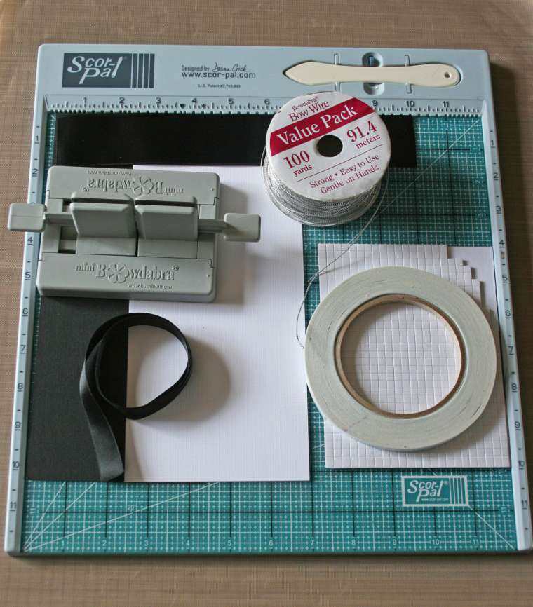 - 7/8″ wide Black Satin Ribbon (length depending on size of the box)